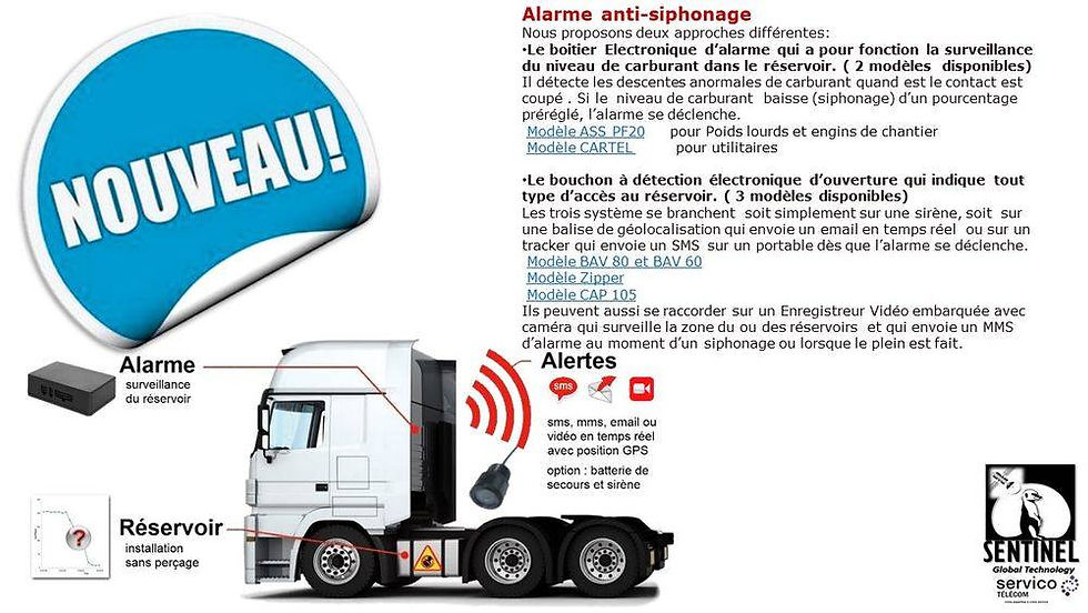- La détection et les alarmes contre le vol de carburant pour lesquelles nous avons un site dédié: